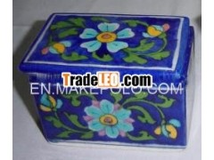 Unique Handmade Box made up of Blue Pottery . This is Beautifulblue pottery article with lot of designs and shapes.Bluepottery is an art of adorning clay pottery items. And the namecomes from Persian blue dye, which is used to color the clay. Thepottery is made using various varieties of clay, and othermaterials.